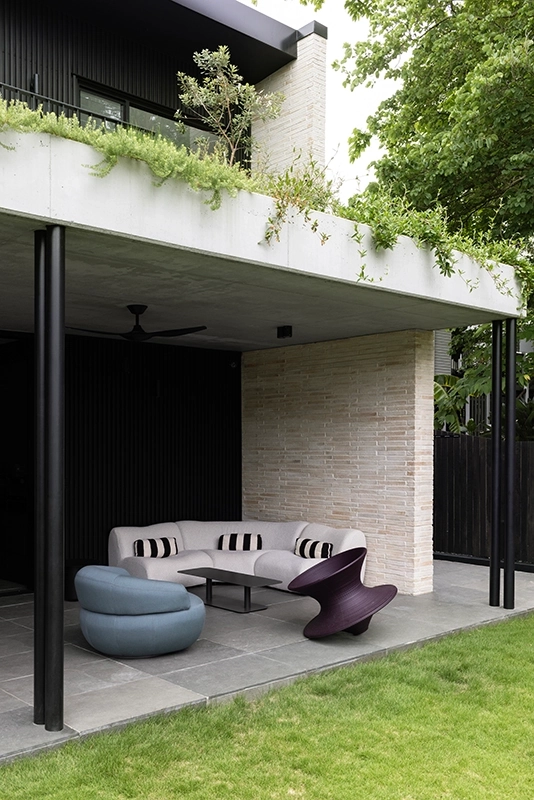 Outdoor areas are treated as a natural extension of the interior, with furniture selections that echo the same sculptural language and tonal restraint. This continuity supports effortless movement between inside and out, encouraging everyday use as much as entertaining.